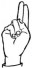 На ћирилици написано ЛАНА ПЛАНИНЧЕВИЋ састоји се из 15 слова [?]. Исписано ћириличном једноручном азбуком за глувонеме: